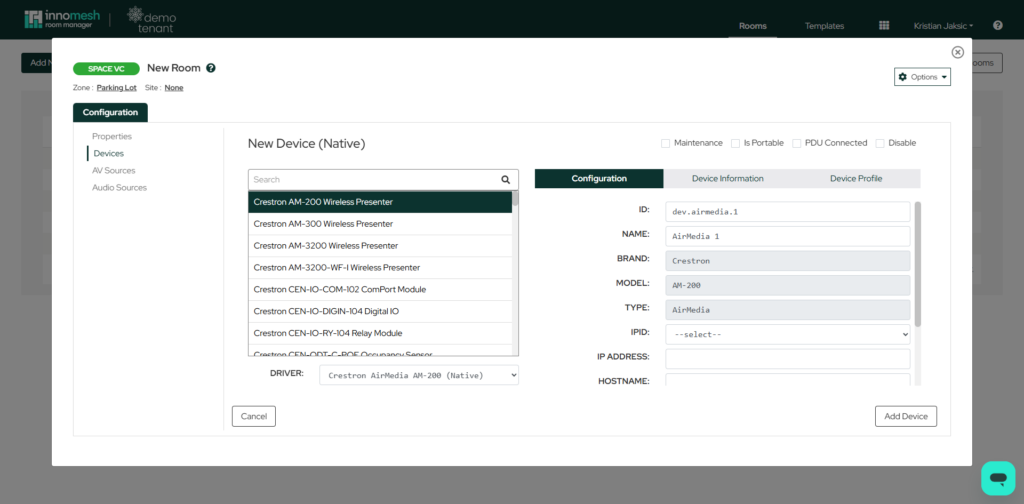 The first devices that need to be populated are the Crestron ‘Native’ devices. This information has been pulled from the template, so the IPIDs of the devices are already populated. If this information is correct, the process can continue. Otherwise, each device can be edited, duplicated or deleted by hovering over the device and clicking on the icons.